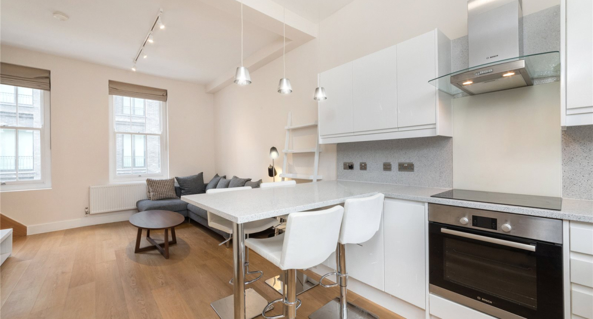 A spacious well-presented one bedroom duplex apartment situated off Charlotte Street in the heart of Fitzrovia. Comprising of open plan living with modern kitchen on the first floor and double bedroom with modern ensuite bathroom on the second floor. Easy access to the west End, Regents park and the Universities. Available Furnished. EPC: C