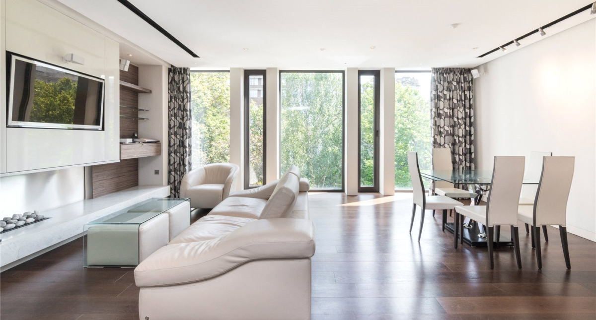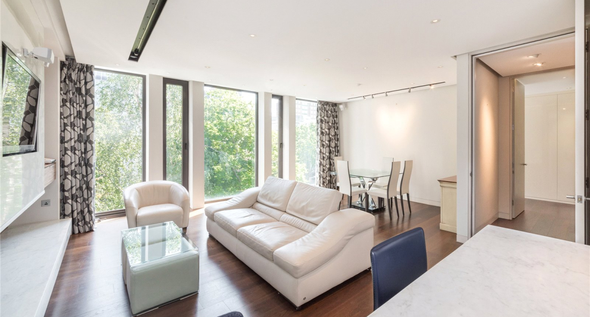 A beautifully presented 2 bedroom apartment enjoying far reaching sylvan views over Queen Square in this premier Bloomsbury location. The apartment features a spacious open plan reception room with full width floor to ceiling windows providing a light and inspiring living space. The stylish contemporary open plan kitchen features top quality integrated appliances throughout. Two double bedrooms, one with an ensuite bathroom and private balcony compliment the accommodation. Russell Square and Holborn stations are within a short walk. EPC: B