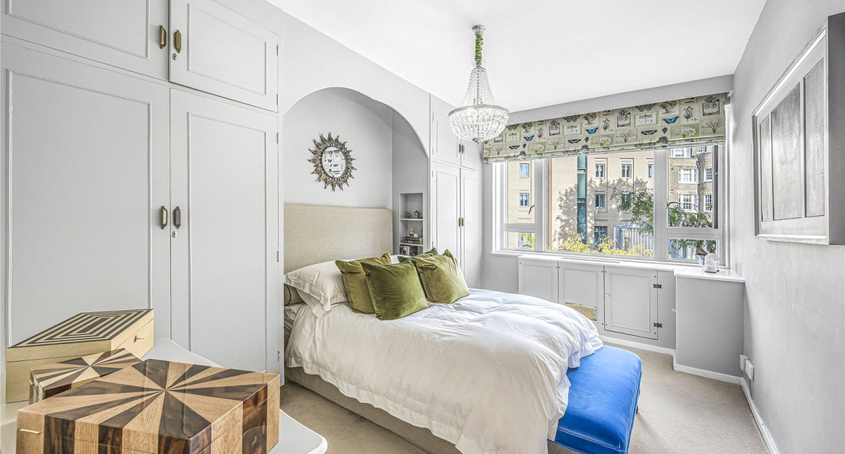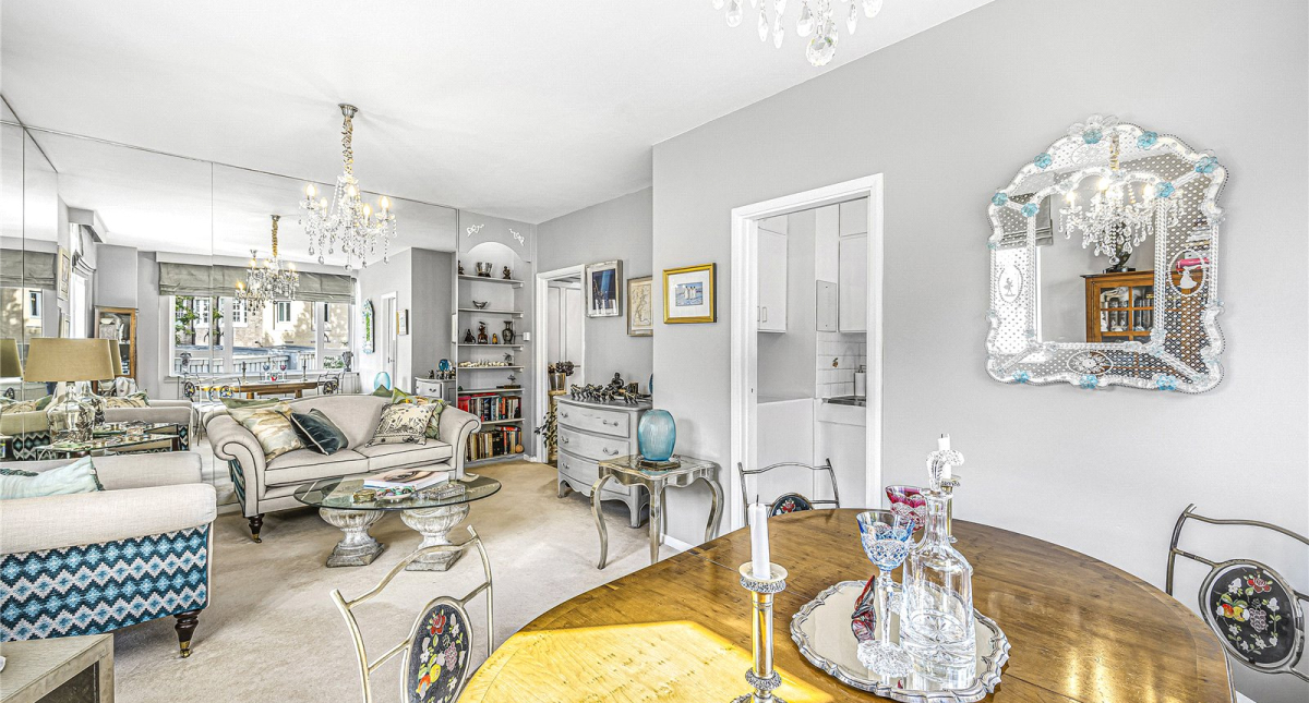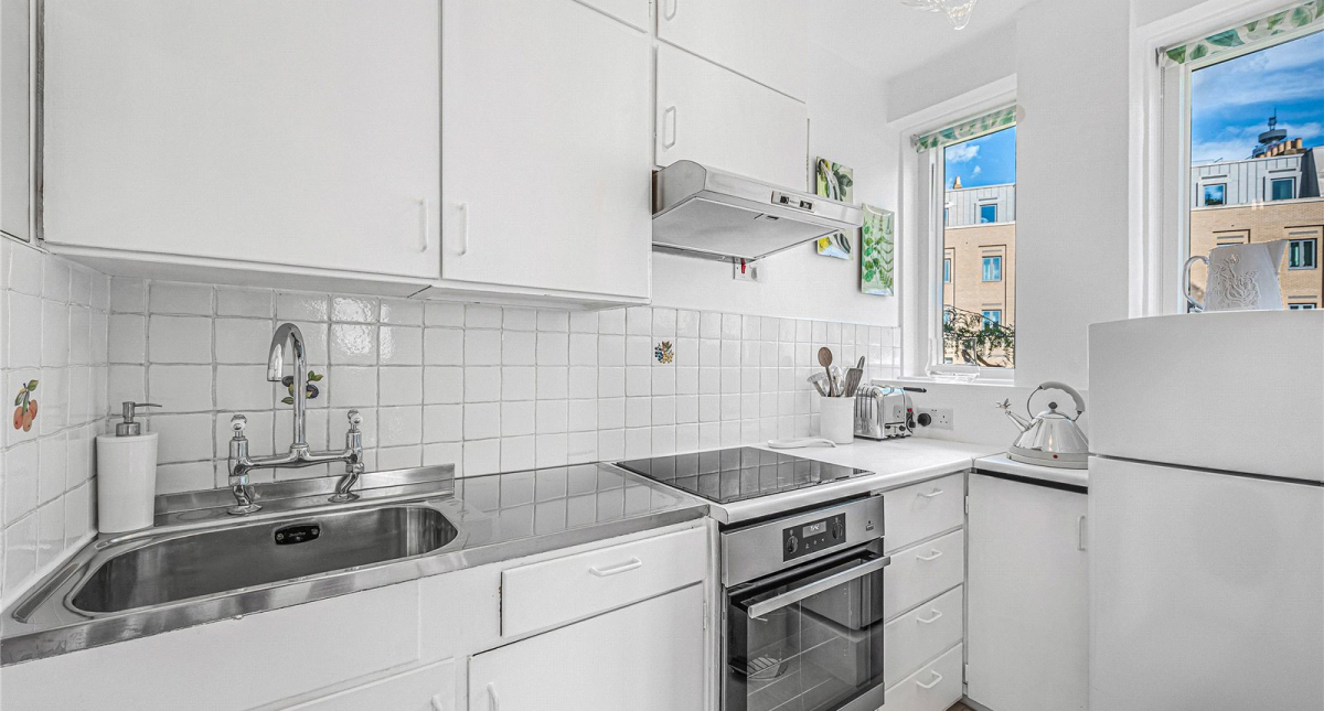 A well-presented dual-aspect one-bedroom flat of 512 sq. ft, situated on the third floor of a highly secure, gated Nash terrace-style development within the Crown Estate. The flat enjoys tranquil views over the private residents gardens to the rear, which have recently been refurbished, and is approached through an impressive entrance lobby with a sweeping staircase.