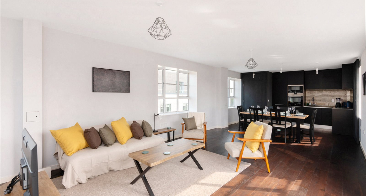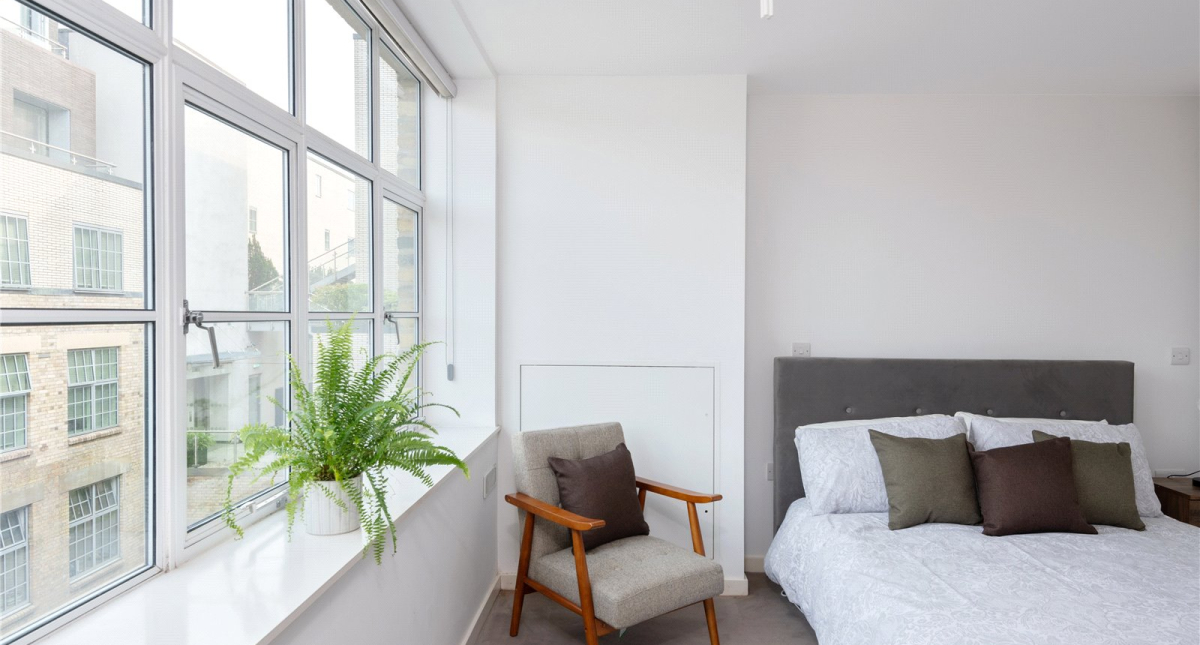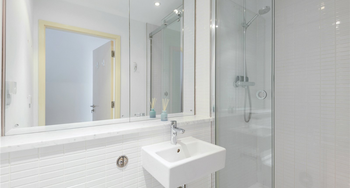 Comprising of naturally bright dual aspect open plan living room which has direct access to the private south facing balcony. The apartment benefits from a well-appointed kitchen with integrated appliances. The 3rd floor comprises of a principal bedroom with ensuite bathroom, 2nd double bedroom and bathroom. There is a large storage cupboard integrated under the stairs.