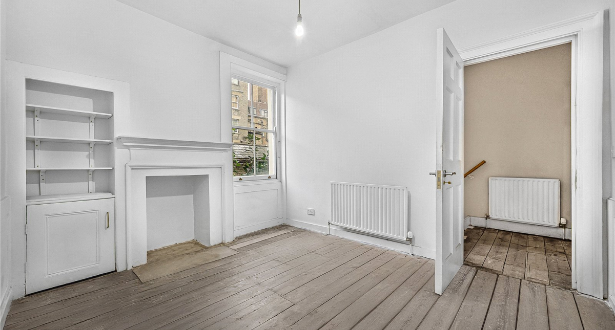 Refurbishment opportunity! Unmodernised Grade II listed freehold period house refurbishment opportunity in Fitzrovia W1. Offering 1895 sq. ft of residential space arranged over 5 floors plus vaults and rear patio garden.